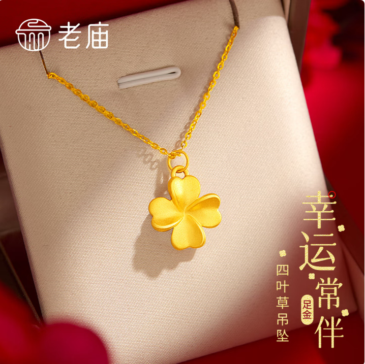 老庙黄金吊坠足金四叶草项链挂坠女锁骨链首饰送女友老婆跨年新年礼物 四叶草吊坠+金项链约1.96g+礼盒