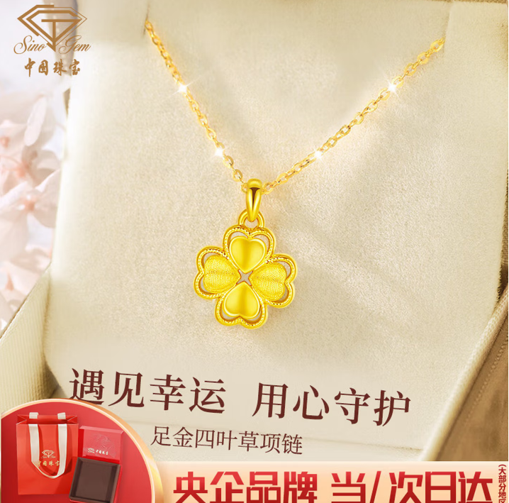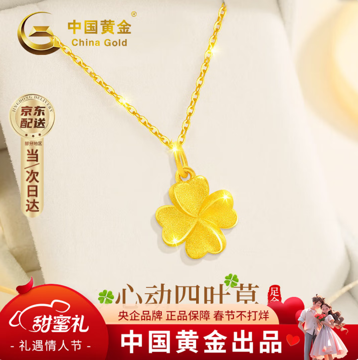 中国黄金(CHINA GOLD)幸运四叶草黄金项链女足金吊坠实用新年情人节礼物送女友老婆 足金四叶草吊坠+K金链