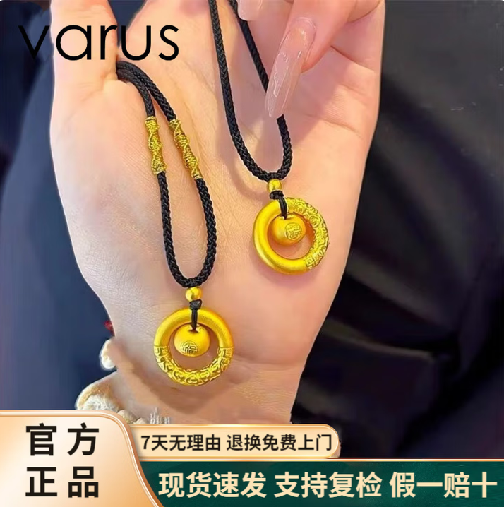 VARUS黄金平安扣小胖福吊坠女999足金金箍圈编制锁骨链项链送女友情侣 【黑绳】金箍圈小胖福吊坠